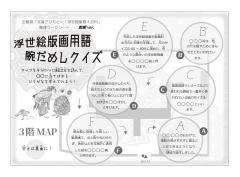 イベント 開催中 企画展関連ワークシート「浮世絵版画用語腕だめしクイズ」 2025年12月11日(木) 〜 2026年2月23日(月) 企画展「北斎でひもとく!浮世絵版画大百科」にあわせ、展示作品に関連するクイズを解きながら鑑賞がより楽しめるワークシート「浮世絵版画用語腕だめしクイズ」を配布しています。今注目の“浮世絵”について学びながら、ワークシートに挑戦してみませんか?