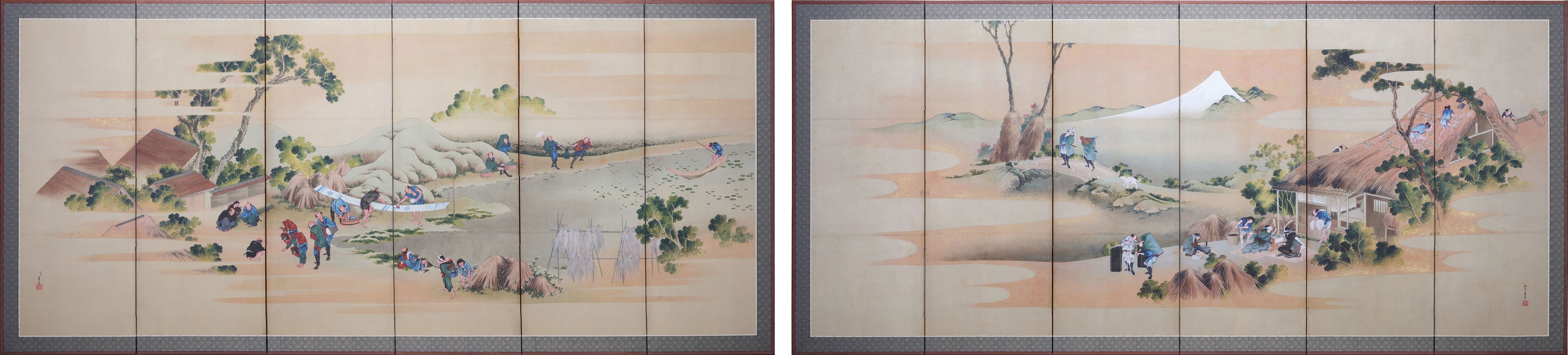 - 「富士田園景図」(原画:フリーア美術館蔵)(高精細複製画)六曲一双