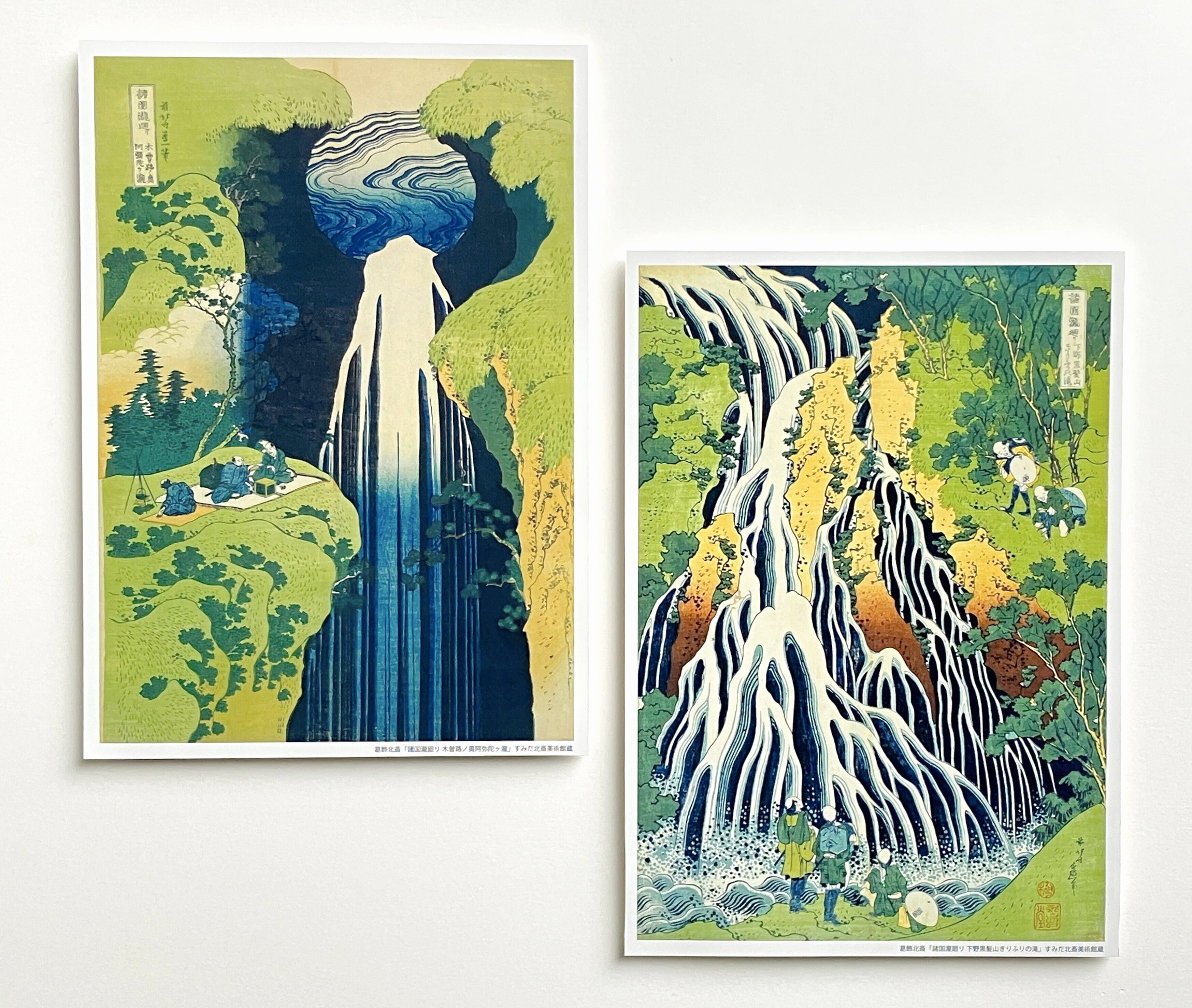 ミュージアムショップでは、11/22(土)よりオリジナルミニアート「諸国瀧廻り 下野黒髪山きりふりの滝/木曽路ノ奥阿弥陀ヶ瀧」(2枚1セット)を発売いたします。A4サイズの額絵で、ポスターのように飾ったりお好みのフレームに入れて飾ったり、諸国瀧廻りシリーズより、人気の高い2作品を気軽にお楽しみいただけます。ぜひ店頭でお手に取ってご覧ください。オンラインショップでの販売も予定しています。